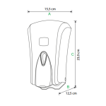 Dozownik przeznaczony na mydło płynne uzupełniane z kanistra, obudowa z plastiku ABS pozwala na długoletnie użytkowanie bez widocznych śladów zużycia.