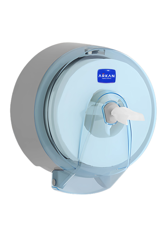 Wykonany ze wzmocnionego tworzywa sztucznego ABS podajnik papieru toaletowego na duże rolki papieru jumbo, przeznaczony do użytku w toaletach publicznych. W miejscu wylotu papieru dozownik wyposażony jest w ząbkowaną listwę, która ułatwiają odrywanie papieru toaletowego. Zamknięcie na plastikowy kluczyk, lekki, trwały i prosty w obsłudze, zapewnia higieniczne i optymalne dozowanie papieru.