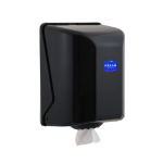 Podajnik na ręczniki w rolce - centralne dozowane. Wykonany jest z wzmocnionego tworzywa ABS w kolorze czarnym. Kształt pojemnika jest opływowy. Idealny jako doposażenie kuchni w restauracjach, lokalach gastronomicznych, stołówkach, oraz miejscach użyteczności publicznej. Dozownik posiada świetne właściwości odporne na zarysowania oraz inne uszkodzenia mechaniczne.