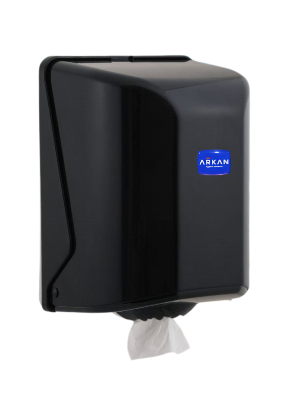 Podajnik na ręczniki w rolce - centralne dozowane. Wykonany jest z wzmocnionego tworzywa ABS w kolorze czarnym. Kształt pojemnika jest opływowy. Idealny jako doposażenie kuchni w restauracjach, lokalach gastronomicznych, stołówkach, oraz miejscach użyteczności publicznej. Dozownik posiada świetne właściwości odporne na zarysowania oraz inne uszkodzenia mechaniczne.