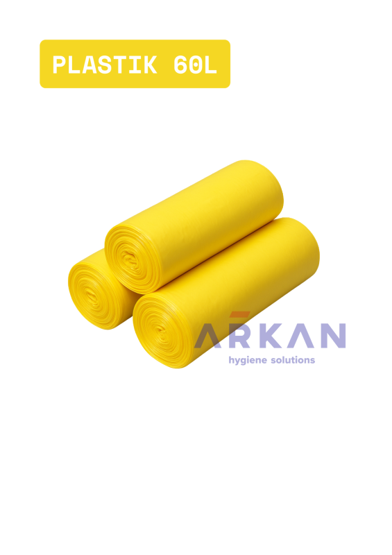 Worki na śmieci wykonane z folii polietylenowej LDPE w kolorze żółtym. Worki z tego materiału są bardzo rozciągliwe, odporne na warunki atmosferyczne, wytrzymałe i trwałe.