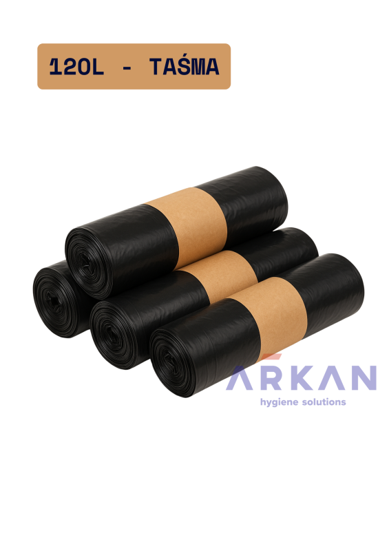 Worki na odpady z taśmą, folia LDPE 120l - 10szt na rolce